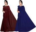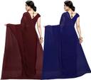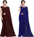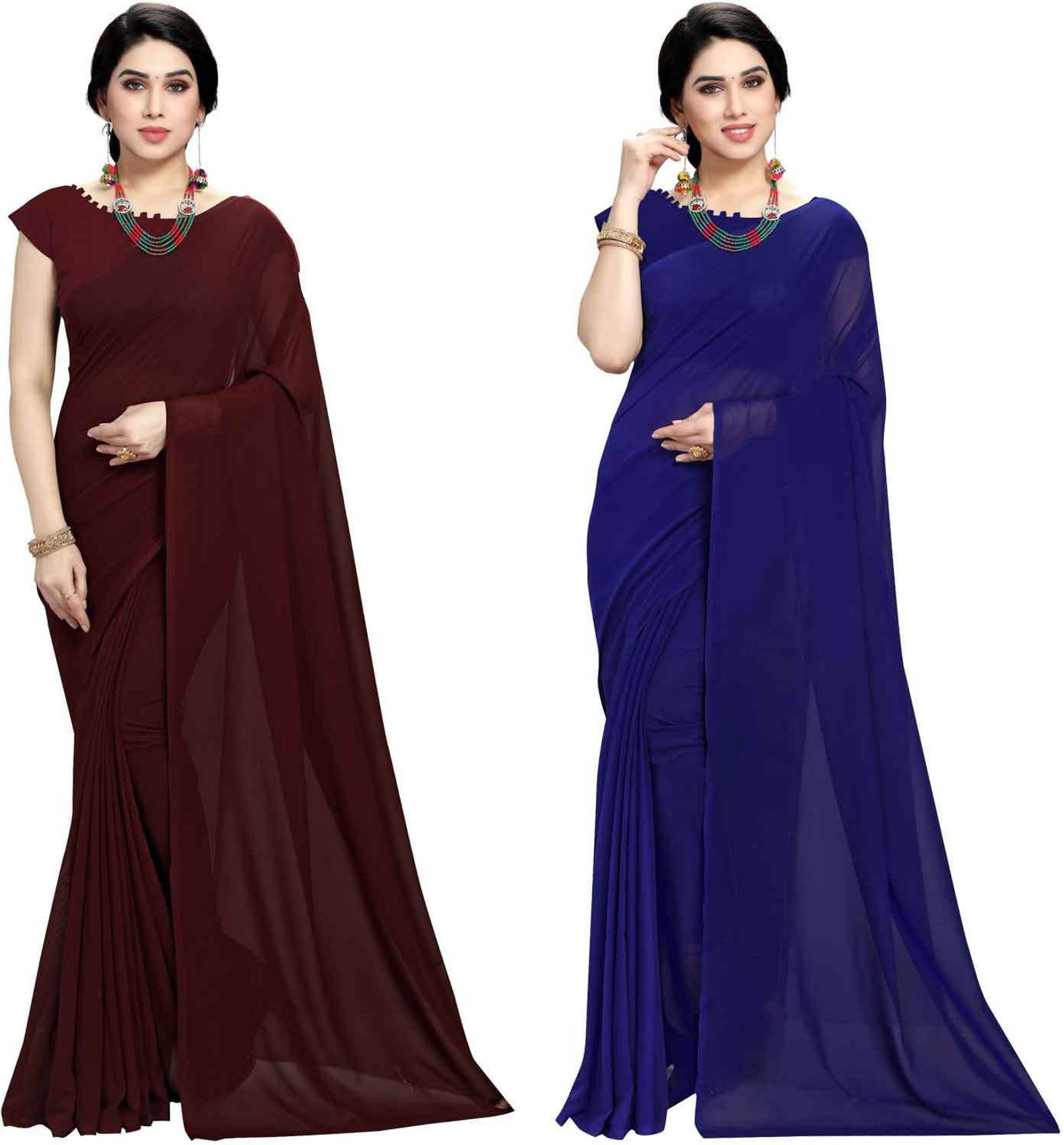 ANAND Solid/Plain Bollywood Georgette Saree (Pack of 2, Dark Blue, Brown)