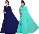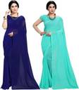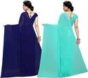 ANAND Solid/Plain Bollywood Georgette Saree (Pack of 2, Dark Blue, Light Blue)