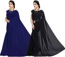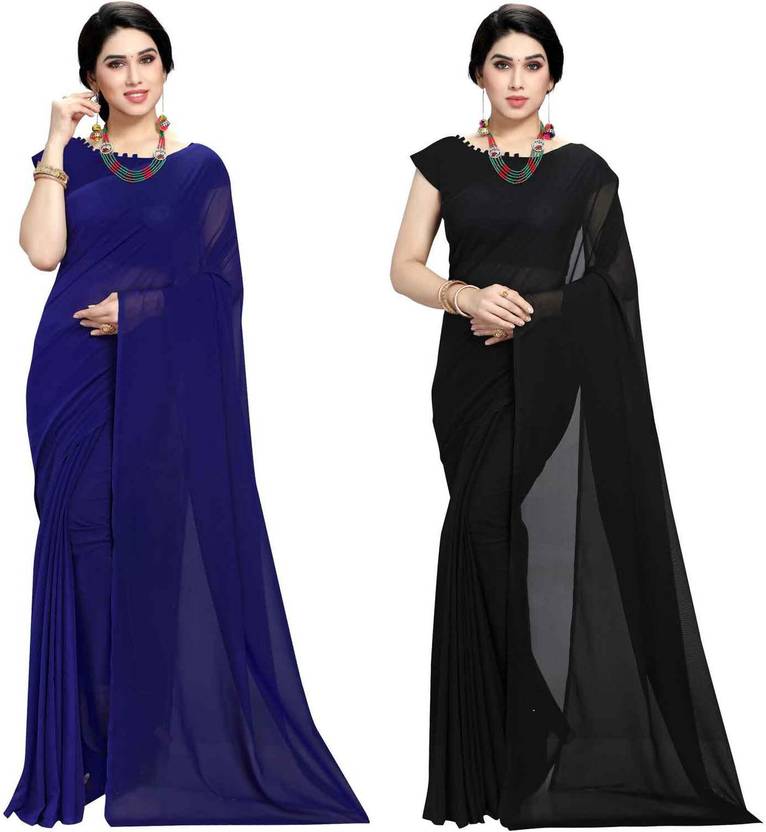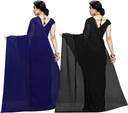 ANAND Solid/Plain Bollywood Georgette Saree (Pack of 2, Dark Blue, Black)