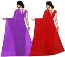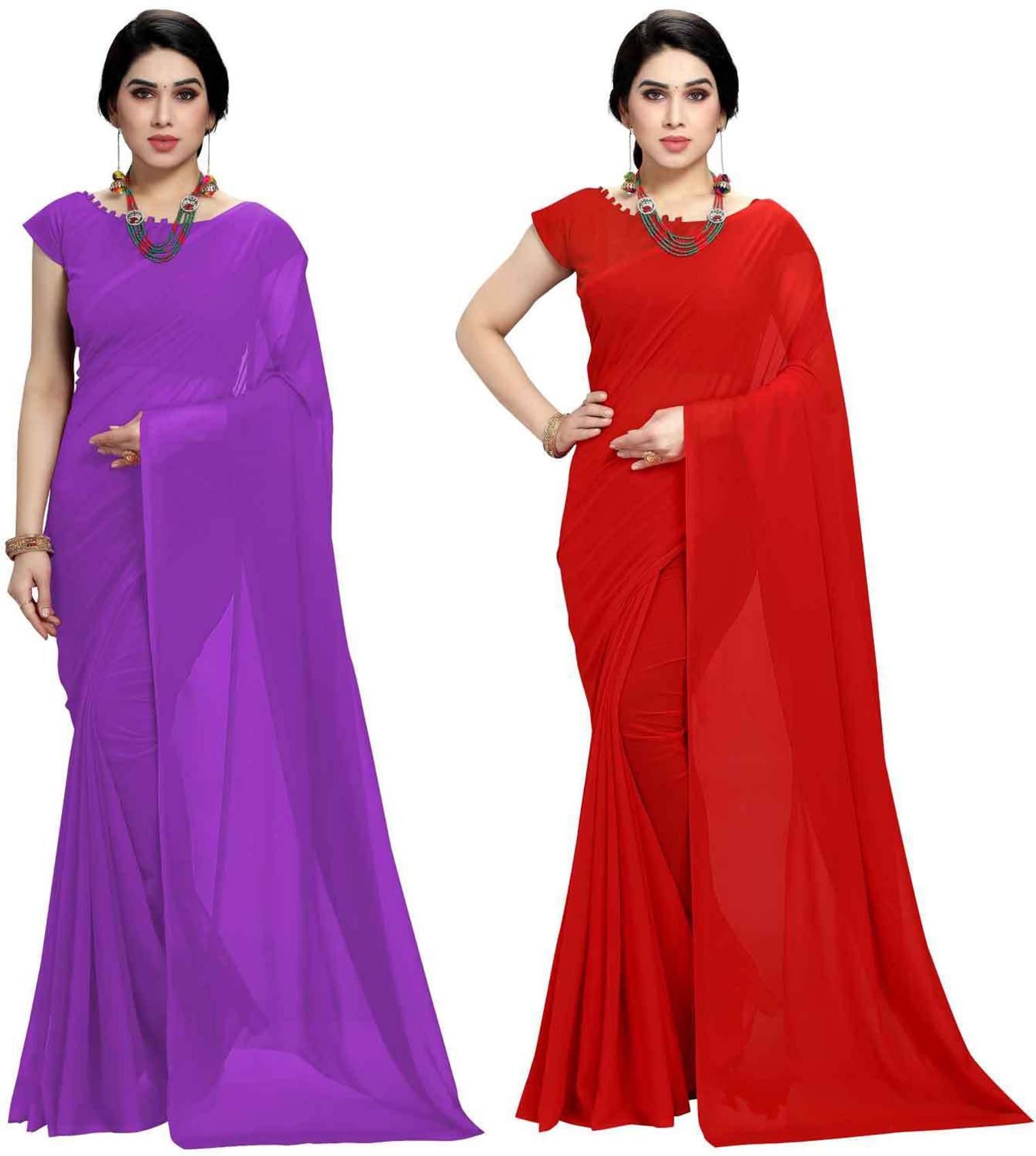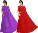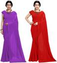 ANAND Solid/Plain Bollywood Georgette Saree (Pack of 2, Purple, Red)