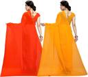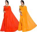 ANAND Solid/Plain Bollywood Georgette Saree (Pack of 2, Orange, Yellow)