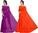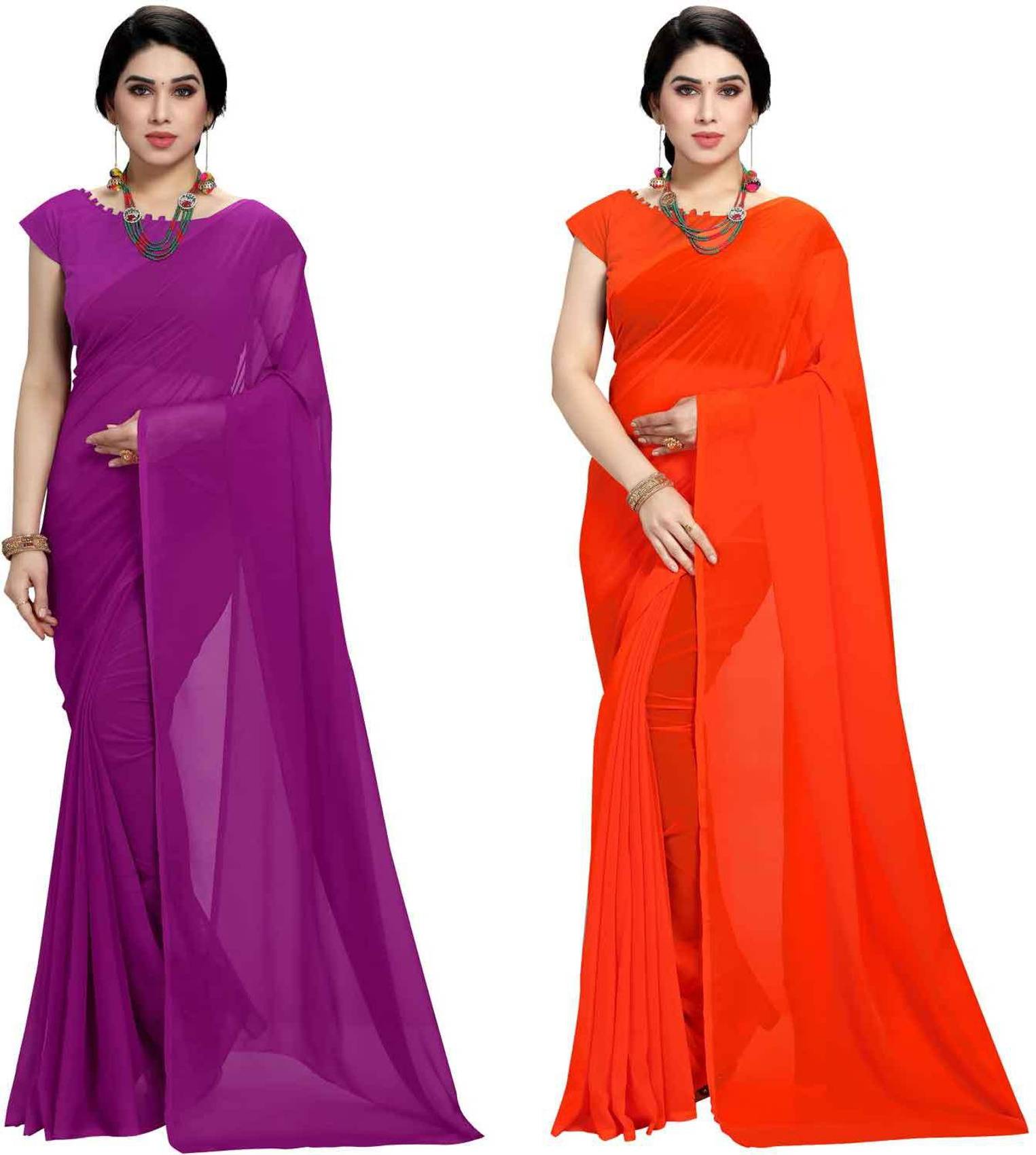 ANAND Solid/Plain Bollywood Georgette Saree (Pack of 2, Magenta, Orange)