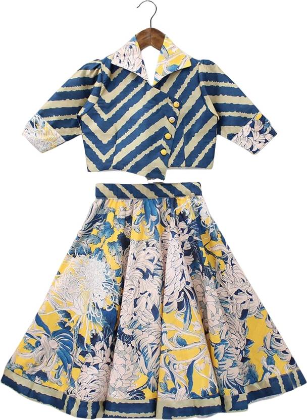 AnantKid Girls Lehenga Choli Ethnic Wear, Fusion Wear, Western Wear Printed Lehenga & Crop Top (Blue, Pack of 1)
