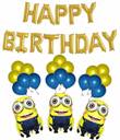 3 pc minion foil, 1 pc golden happy birthday foil, 17 yellow balloon, 17 pc blue balloon