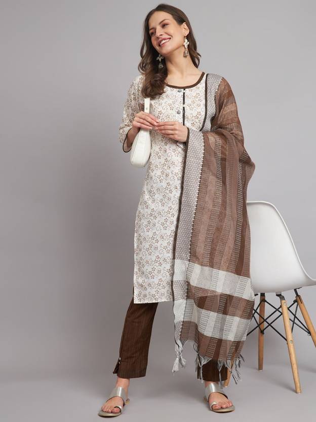 would comprise both the top and the bottom wear to create a complete outfit. You would only have to pair suitable jewellery and footwear to complete the look. You can explore the various designs available here, to find styles that you would best like to flaunt. There are sets that feature a floral printed kurta paired with a striped palazzo, tie-dye kurti paired with plain leggings, solid coloured kurtas paired with multi-coloured bottoms, and more. Such sets can effortlessly add oodles of style to your look. Khadi silk, cotton, georgette, satin, and polyester are some of the most commonly used fabrics in these ethnic sets.