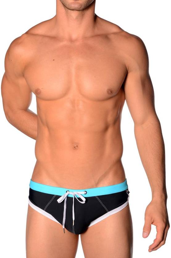 Solid Men Black Swimsuit