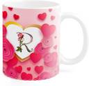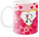 ANDV Alphabet Letter "R" Printed On Beautiful Heart-Shaped Pink Rose Frame Tea & Coffee (M-0CAB19BC0F) Ceramic Coffee Mug (350 ml)