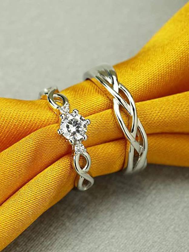 ANE Silver Plated Adjustable Couple Rings For Couples Alloy Cubic Zirconia Sterling Silver Plated Ring Set