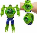 Ang Transformer Robot Toy Convert to Digital Wrist Watch for Kids Avengers Robot Deformation Watch Spider Man / Captain America / Iron Man / Hulk Toy Figures Plus Watch (Hulk) (Green)