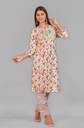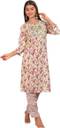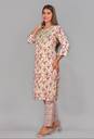 ANG VASTRA Women Floral Print Cotton Rayon Straight Kurta (Pink, Beige)