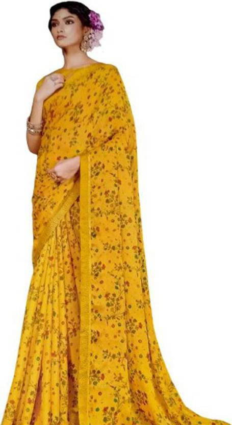Digital Print Assam Silk Brasso Saree (Yellow)