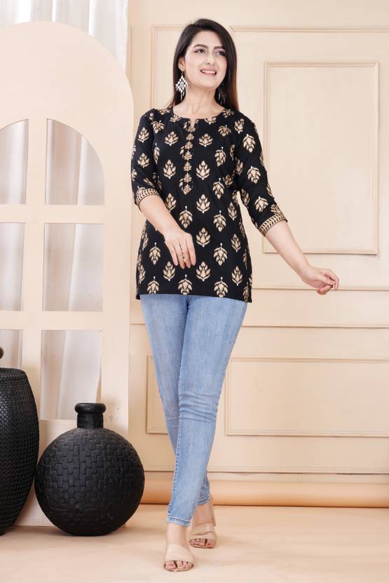 Casual Regular Sleeves Printed Women Black, Beige, White Top
