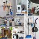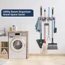 Great for laundry room organization.It holds broom, mop, stick vacuum, and microfiber mop to keep them up off the ground.