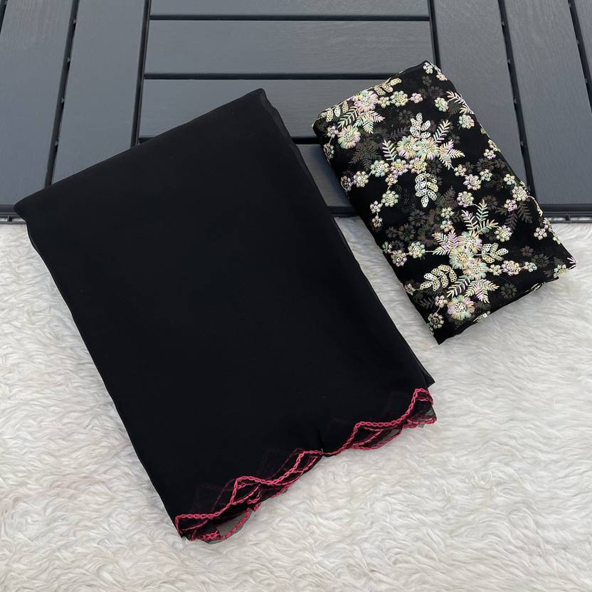 KONICA FAB Solid/Plain Bollywood Georgette Saree (Black)