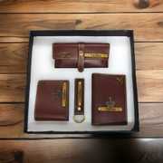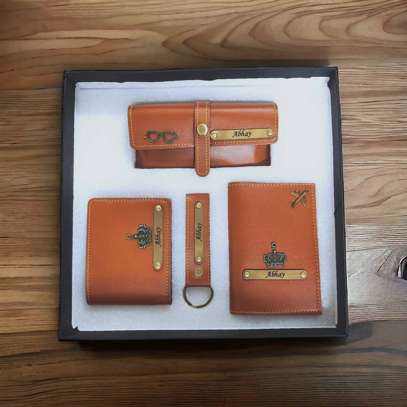 Elevate his everyday with a touch of personalization. This premium men's gift box features a customized 4-piece ensemble: Sleek wallet: Crafted from high-quality materials, personalized for seamless style. Secure passport cover: Protects travel essentials while expressing his unique identity. Durable keychain: Keeps keys organized and adds a personalized touch. Protective sunglasses case: Keeps shades safe and reflects his individual flair. Impeccably crafted, endlessly customizable - the perfect gift for any occasion. For Placing an order Step 1 : PLACE YOUR ORDER. Step 2 : PLEASE MAIL OR WHATS_APP US IMMEDIATELY WITH YOUR ORDER ID (WITHIN 5-6 HOURS) Contact Details : +_9_1_7_9_7_7_1_2_2_4_2_2 PLEASE NOTE: FOR PERSONALISATION WE DONT GET YOUR CONTACT DETAILS YOU HAVE TO CONTACT US BY WHATS_APP OR BY MAIL ,IF YOU DONT CONTACT US WE WILL SEND YOU THE BLANK PRODUCT Please Select Buyer : AngelsCreation12