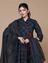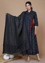 Angiya Women's Applique Printed & Tasseles Angrakha Kurta with Blue Dupatta set