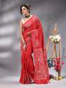 angoshobha Solid/Plain Handloom Cotton Blend Saree (Red)