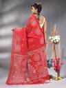 Solid/Plain Handloom Cotton Blend Saree (Red)