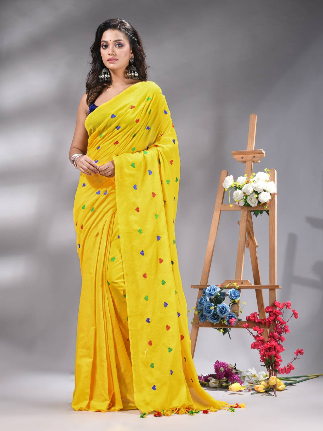 Solid/Plain Handloom Cotton Blend Saree (Yellow)