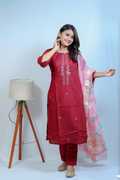 Women Art Silk Kurti Pant Dupatta Set