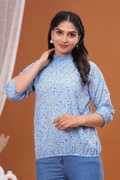 Casual Regular Sleeves Printed Women Blue Top