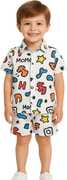 Add a burst of fun and color to your little one’s wardrobe with our Trendy Alphabet Print Shirt & Shorts Set for Boys (1-8 Years). Designed to keep kids cool, comfy, and stylish all summer long, this vibrant co-ord set features a half-sleeve button-down shirt paired with matching elastic-waist shorts. Made from a soft, breathable cotton blend, it ensures all-day comfort during play, parties, or travel. The playful alphabet print sparks creativity and adds a unique, eye-catching charm. Available in 4 exciting colors – Black, Purple, Sky Blue, and White – there’s a style for every personality. Whether it’s a casual day out, birthday party, or holiday, this outfit is the go-to choice for stylish boys. Easy to wear, wash, and mix-and-match, it’s a wardrobe essential for trendy toddlers.
