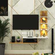 ANIKAA LED Light TV Wall Unit Engineered Wood TV Entertainment Unit (Finish Color - White, DIY(Do-It-Yourself))