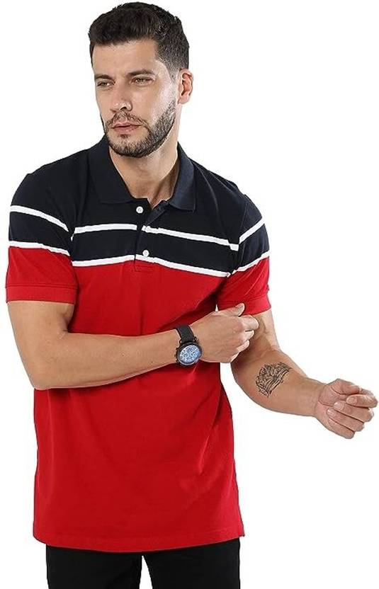 anil kumarĀ Men Striped Polo Neck Pure Cotton Multicolor T-Shirt