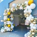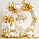 ANILOONS Solid Gold & White Metallic Balloon Garland Kit - Celebrate Your Precious Day Balloon (Gold, White, Pack of 114)