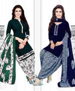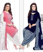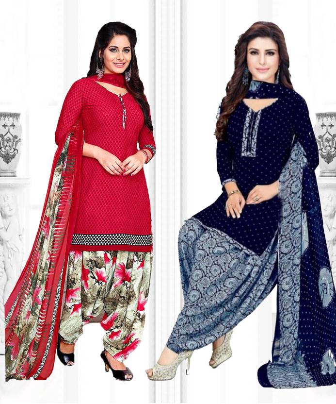 Womens Crepe Printed Unstiched Dress Material. Add style to your Daily Wear Collection with this Printed Dress material Salwar suit. Two Unstitched Salwar, Two Unstitched Top, Two Dupatta.Top & Bottom Fabric : American Crepe, Dupatta Fabric : Martina You can use it for daily wear purpose it will give you immense comfort and fresh styling look.
