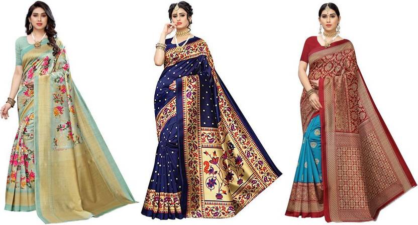This pack of 3 sarees from Anirav is suitable for all ocassions. The sarees will look trendy as casual party wear, festive wear and also on religious ceremonies. These sarees are perfect for wedding ocassion and also give a formal look perfect for office wear. They can be paired with any matching or contrast blouse and can be draped in variety of ways. Both the sarees give a great feel as they are made of soft fabric, and come with matching blouse material that can be customised as per requirement. Women can wear this sarees combo to look stylish.