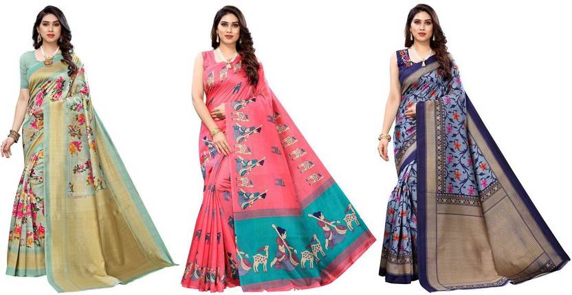 This pack of 3 sarees from Anirav is suitable for all ocassions. The sarees will look trendy as casual party wear, festive wear and also on religious ceremonies. These sarees are perfect for wedding ocassion and also give a formal look perfect for office wear. They can be paired with any matching or contrast blouse and can be draped in variety of ways. Both the sarees give a great feel as they are made of soft fabric, and come with matching blouse material that can be customised as per requirement. Women can wear this sarees combo to look stylish.