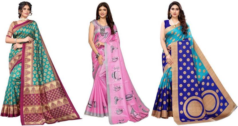 This pack of 3 sarees from Anirav is suitable for all ocassions. The sarees will look trendy as casual party wear, festive wear and also on religious ceremonies. These sarees are perfect for wedding ocassion and also give a formal look perfect for office wear. They can be paired with any matching or contrast blouse and can be draped in variety of ways. Both the sarees give a great feel as they are made of soft fabric, and come with matching blouse material that can be customised as per requirement. Women can wear this sarees combo to look stylish.