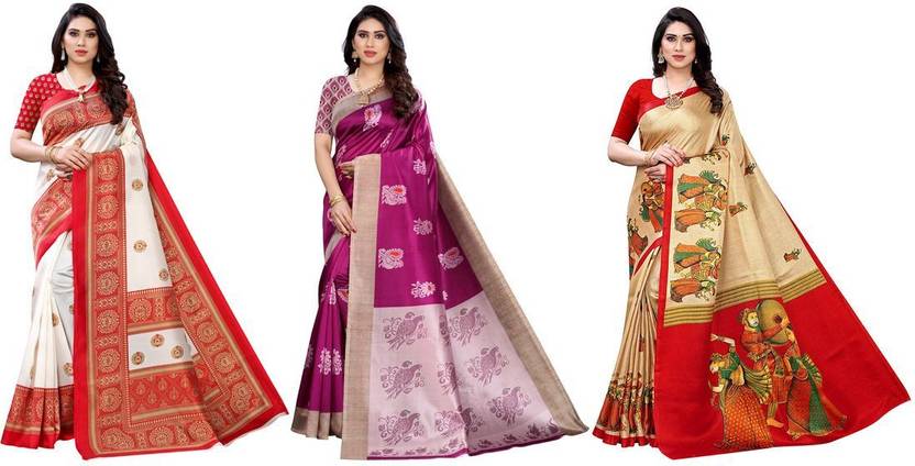 This pack of 3 sarees from Anirav is suitable for all ocassions. The sarees will look trendy as casual party wear, festive wear and also on religious ceremonies. These sarees are perfect for wedding ocassion and also give a formal look perfect for office wear. They can be paired with any matching or contrast blouse and can be draped in variety of ways. Both the sarees give a great feel as they are made of soft fabric, and come with matching blouse material that can be customised as per requirement. Women can wear this sarees combo to look stylish.