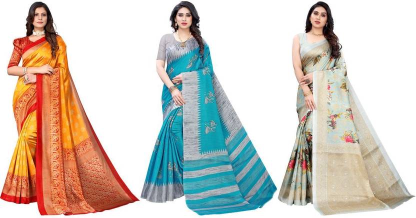 This pack of 3 sarees from Anirav is suitable for all ocassions. The sarees will look trendy as casual party wear, festive wear and also on religious ceremonies. These sarees are perfect for wedding ocassion and also give a formal look perfect for office wear. They can be paired with any matching or contrast blouse and can be draped in variety of ways. Both the sarees give a great feel as they are made of soft fabric, and come with matching blouse material that can be customised as per requirement. Women can wear this sarees combo to look stylish.