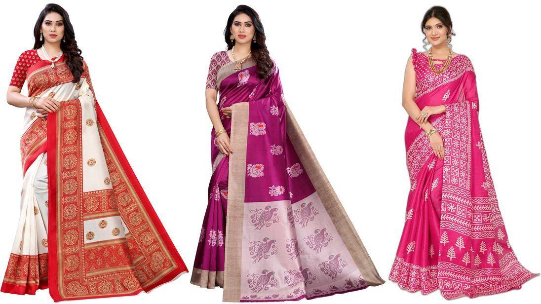 This pack of 3 sarees from Anirav is suitable for all ocassions. The sarees will look trendy as casual party wear, festive wear and also on religious ceremonies. These sarees are perfect for wedding ocassion and also give a formal look perfect for office wear. They can be paired with any matching or contrast blouse and can be draped in variety of ways. Both the sarees give a great feel as they are made of soft fabric, and come with matching blouse material that can be customised as per requirement. Women can wear this sarees combo to look stylish.
