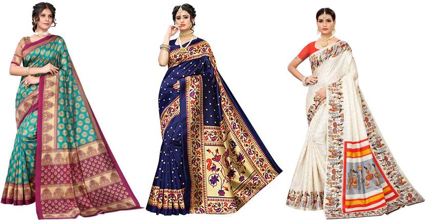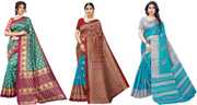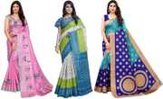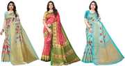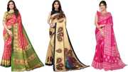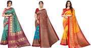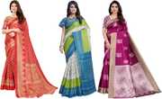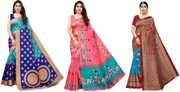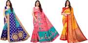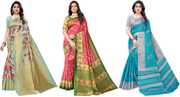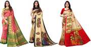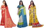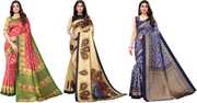 Anirav Women's Trendy Pack of 3 Art Silk Sarees with Blouse Materials