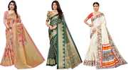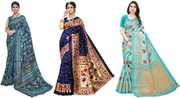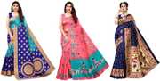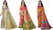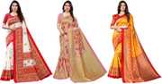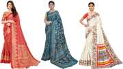 This pack of 3 sarees from Anirav is suitable for all ocassions. The sarees will look trendy as casual party wear, festive wear and also on religious ceremonies. These sarees are perfect for wedding ocassion and also give a formal look perfect for office wear. They can be paired with any matching or contrast blouse and can be draped in variety of ways. Both the sarees give a great feel as they are made of soft fabric, and come with matching blouse material that can be customised as per requirement. Women can wear this sarees combo to look stylish.