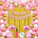 Anita Enterprises Charming Birthday Decoration Kit - White, Golden and Pink Metallic balloons. (Set of 63)