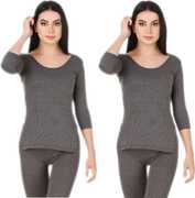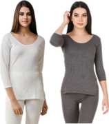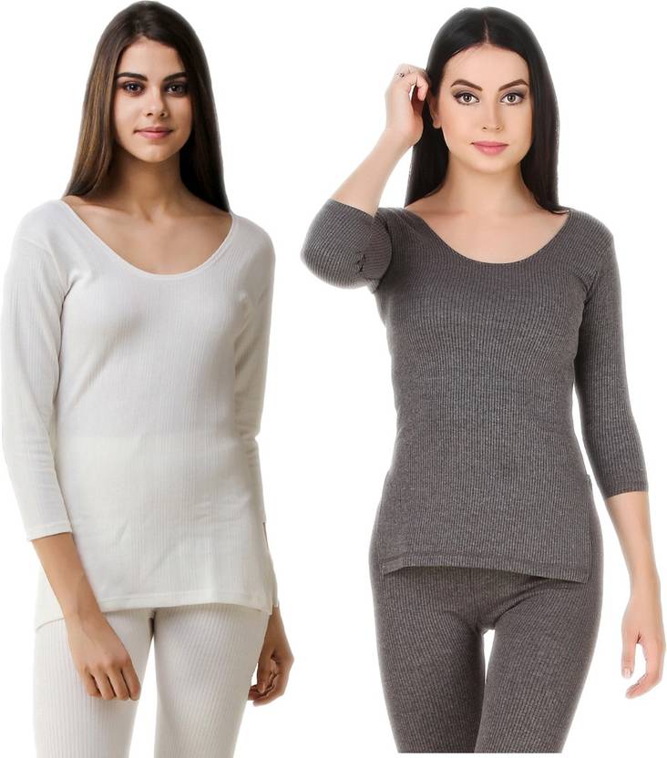 Anixa White and Grey Colored Soft Casual Solid Cold Weather Winter Woolen Full Sleeve Thermal Top For Men and Women's (Pack of 2)