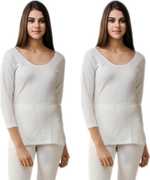 Anixa White and Grey Colored Soft Casual Solid Cold Weather Winter Woolen Full Sleeve Thermal Top For Men and Women's (Pack of 2)