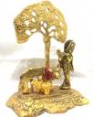 Anjali collection Metal Krishna with Cow Standing Under Tree Playing Flute Decorative Show piece Decorative Showpiece - 8 cm (Brass, Gold)
