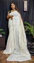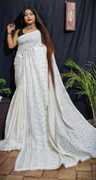 Anjali textile Printed, Self Design Lucknow Chikankari Cotton Blend Saree (White)