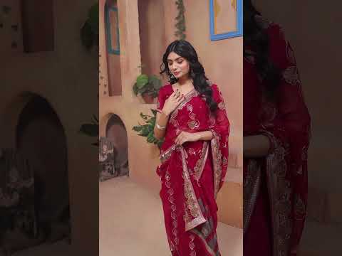 Bhojal Creation Embroidered, Embellished Bollywood Georgette Saree Gold