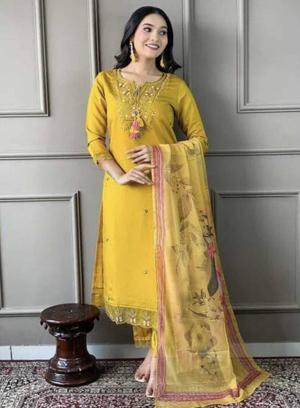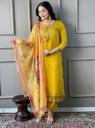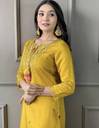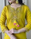 This vibrant mustard kurti is a perfect blend of traditional charm and contemporary style. Featuring intricate embroidery on the neckline, the kurti adds a touch of elegance and grace. Paired with stylish jhumkas, it exudes a sense of cultural richness, making it ideal for festive occasions or casual wear. The outfit is complemented by comfortable pants that offer a sleek and modern fit, ensuring both style and comfort. To complete the look, a beautiful floral-printed dupatta in matching tones adds a dash of color and sophistication. This ensemble is perfect for those who love to celebrate their heritage with a fashionable twist.