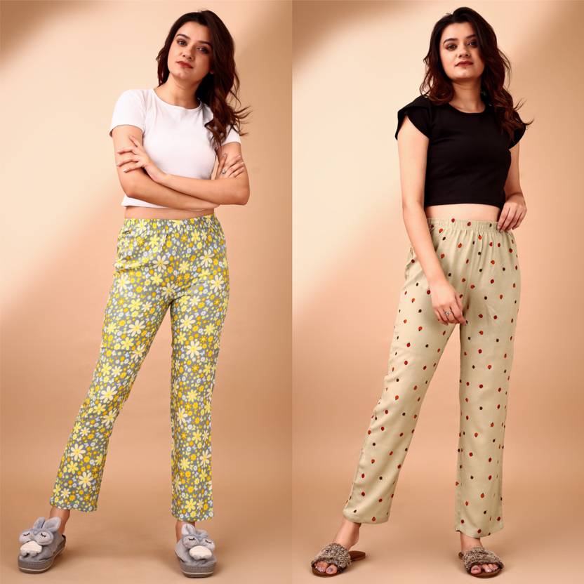 Made of Rayon Fabric Printed Night Payjama/Pants For Womes Can Be Used As Sleepwear,Joggers For Womens & Have Stylish Back Pockets.These Rayon Pyjamas Combos Features Elasticated Waistband With Drawstring Closure And A Relaxed Waist & Seat Provides Super Comfort During Your Sleep Or Before And After Workout.