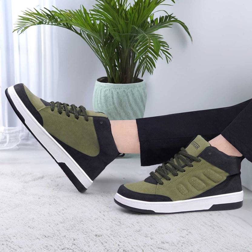 Step into everyday comfort with these stylish olive green and black high-top sneakers, designed for casual wear and all-day support. Featuring a soft suede-like upper, durable stitching, and a lightweight cushioned sole, these sneakers effortlessly blend fashion with functionality. Perfect for walking, travel, and everyday outings.