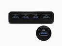 This SuperSpeed 4-port hub delivers convenient connection access for USB 3.0 fans. Equipped with both a 12V 2A adapter and built-in surge protection. Its sleek, compact design and high performance make this Uspeed hub an excellent companion for busy techies on the go. System Requirements. Windows XP/Vista/7/8, Mac OS, Mac OS X Lion 10.7.4 users should upgrade to Mountain Lion 10.8.2 or later to avoid unstable connections. This hub's firmware has been actively updated for Mac compatibility. For any Mac specific issues, apply the latest Apple updates. Please contact our customer support if any problems remain. Package Includes. 1 USB 3.0 4-port Hub, 1 12V 2A Power Adapter(with 3.9ft cord), 1 USB 3.0 Cable (3 feet), 1 User Manual. Usage Alert for Power Users. To ensure a stable connection, the connected devices must not exceed a combined current of 3.4A. This is especially important for any devices with high power requirements such as self-powered hard drives which draw power from the USB port. We recommend that you avoid simultaneously connecting four or more of such self-powered devices. This hub is not designed to serve as a standalone charger and will not charge an iPad tablet or any other device with non-standard charge requirements. Additional Notes. Some USB 3.0 devices require a direct connection to host USB 3.0 ports, including some USB 3.0 hard disks and SuperDrive. 2.4Ghz wireless devices (keyboards, mice, etc.) may not work around USB 3.0 ports. Try using a USB 2.0 connection. Product Features 4 SuperSpeed USB 3.0 ports support data transfer rates of up to 5Gbps. (Note: actual rate will depend on the capability of your device.) Backward compatible with USB 2.0 / 1.1. Supports Plug and Play and hot swapping. No installation of drivers required for Windows XP/Vista/7/8 or Mac OS X 10.2 and above. 4 USB 3.0 ports with built-in surge protector; Smart chip power management allows devices to communicate idle states and latency tolerance for progressively lower power states and subsequently increased performance and power efficiency. LED indicators display the status of DC power supply and USB connections, No driver needed, plug and play. 24 x 7 Email Support. Free lifetime technical support and 18-month manufacturer's warranty.