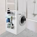 Anko Magenatic Shelf for Refrigerator, Washing Machine, Dishwasher | Magnetic caddy for laundry cleaning accessories | Kitchen magnetic stand for kitchen essentials | with Shelfs, Hooks and Napkin, Towel, Paper Roll Wooden Holder | Size: 61cm (H) x 28cm (W) x 11cm (D)- White