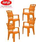 ANKUR Comfy Plastic Cafeteria Chair (Red, Set of 4, Pre-assembled)
